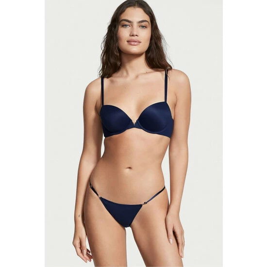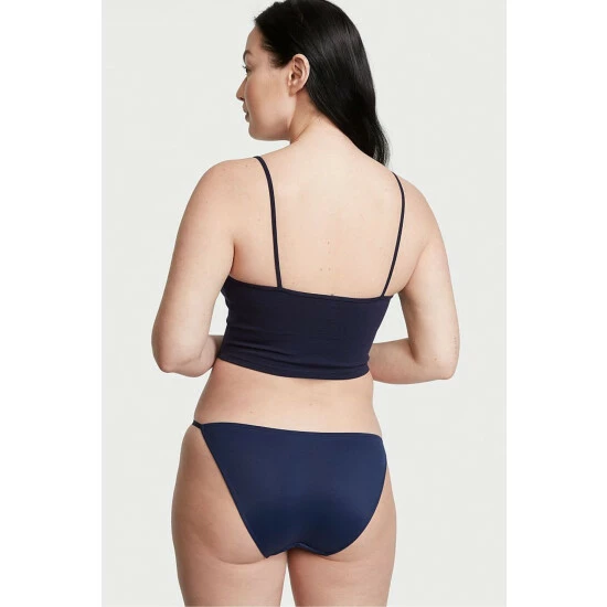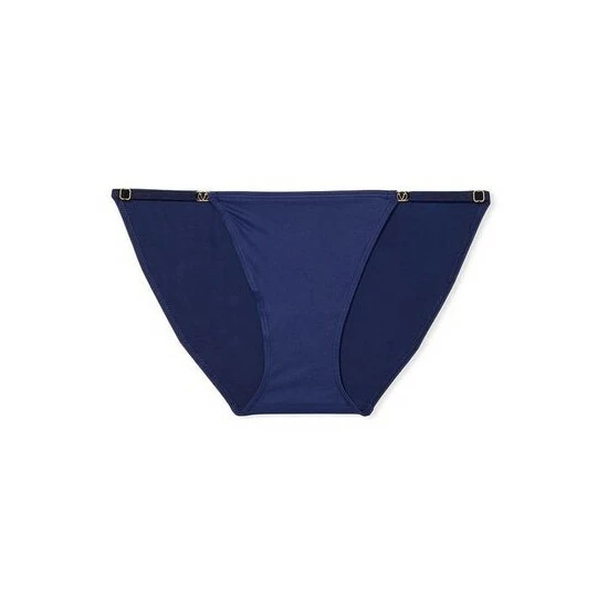 A whole new level of comfort-featuring adjustable straps for our most customizable fit yet. Its soft, stretchy fabric is partially made from recycled materials, and our signature V-hardware adds an opulent touch. Low rise Pure cotton panel gusset Adjustable side straps Moderate back coverage: shows a little, but not all Gold V-hardware Partially made from recycled materials Machine wash Imported