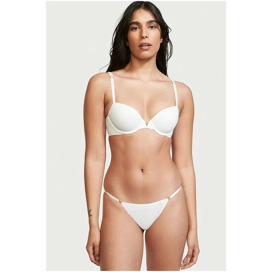 A whole new level of comfort-featuring adjustable straps for our most customisable fit yet. It’s soft, stretch fabric is partially made from recycled materials, and our signature V-hardware adds an opulent touch. Panty features a low rise silhouette with lace that lays flat for no show-through. Pure cotton panel gusset and adjustable side straps. Moderate back coverage: shows a little, but not all.