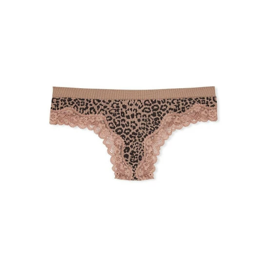 Classic coverage, reimagined. Our ultra soft-and-stretchy thong is updated in a buttery, ribbed fabric. Leopard print and lace trim give this comfortable style extra oomph.. Mid rise Seamless ribbed fabric Stretch lace trim Moderate back coverage: Shows a little, but not all Machine wash Imported