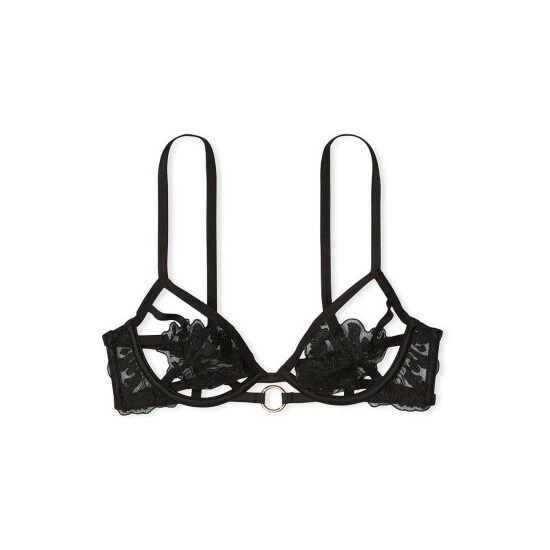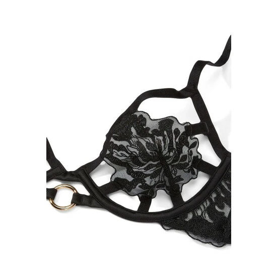 Say it without saying it. This daring style conceals and reveals just enough to keep interest piqued. Featuring peekaboo cups with strategically-placed applique plus harness-inspired ring hardware. Open cup. Unlined. Underwired. Fully adjustable straps. Back hook-and-eye closure. Strappy accents. Gold-tone. O-ring hardware.