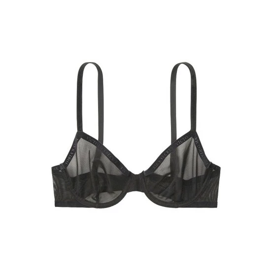 An instant favorite.;A sheer, unlined demi with our signature logo border and plush velvet straps. Lift ; Lining Sheer, unlined cups Underwire Straps ; Hooks Adjustable straps Back hook-and-eye closures Details ; Fabric Sheer mesh Flocked logo at the edges Velvet straps Hand wash Imported Body/wing: 60% polyamide, 40% elastane Flocking: 100% polyamide exclusive of decoration