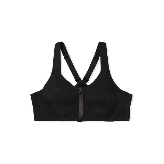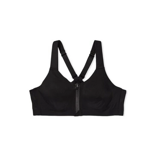 Turn up the heat in a sport bra as tough as your workout. Premium 4-way stretch, quick-drying and durable, this style was made to move. A breathable lace mesh panel in back strikes a pretty-powerful balance. Patented bra-within-a-bra technology with cushioned underwire cups that clip in the center. An outer layer of fabric wraps around the inner bra to provide compression, bounce control and maximum support. Semi auto-lock zipper keeps you secure. Strong, yet breathable spacer fabric. Hidden cushioned underwire cups. Adjustable padded straps for stabilized support. Perfect for running, boxing, cardio. Smooth bonded no-seam racerback for comfort. Exclusively patented technology. Breathable mesh lace panel in back.