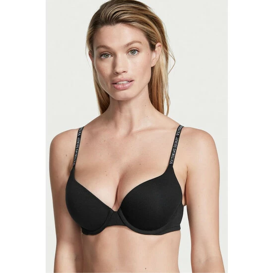 You love them, you live in them. And now, our best-selling T-shirt bras are updated with partially recycled materials. Same flawless fit-full coverage with plush push-up padding that enhances your natural cleavage-but you can feel even better about wearing it. In a soft cotton-modal blend with our signature logo straps. Lift. Lining. Push-up padding. Made with a 100% recycled pad liner. Full coverage. Underwire. Straps. Hooks. Adjustable straps. Back closure.