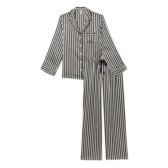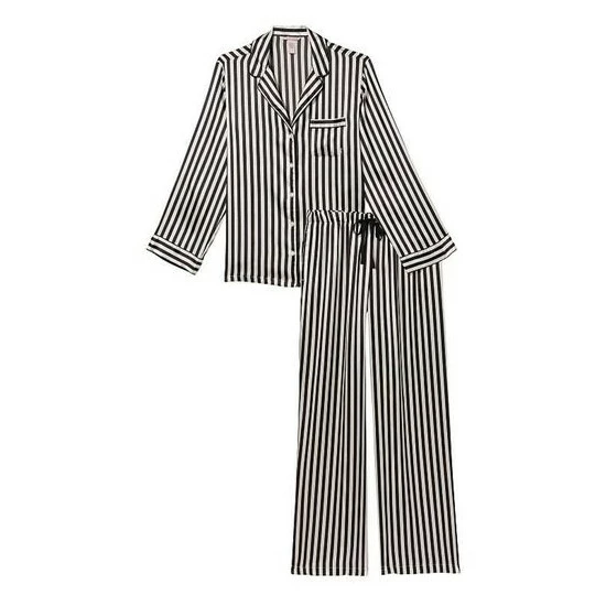 Now entering sleep mode. Relax in this satin pant and matching long-sleeve top with a chest pocket, notch collar, and decorative piping. Easy fit. Long-sleeve, button-front top hits below hips. Chest pocket with embroidered V. Pant with drawstring waist. Short: 29 inseam, Regular 31 inseam, Long 33 inseam.