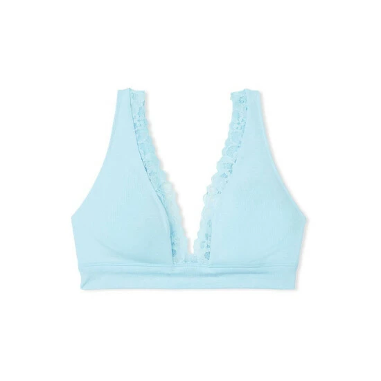 Victoria’s Secret Victoria’s Secret Breaker Blue Cotton Lace Trim Unlined Bralette