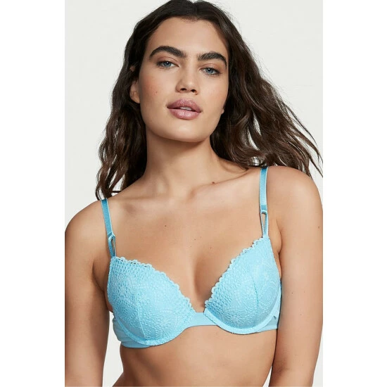 Come for the gorgeous lace, stay for the comfortable support (and perfect amount of lift). Your favorite everyday push-up is now available in a sweet eyelet pattern. Finished with delicate, scalloped trim along the plunge neckline. Push-up padding. Underwire. Adjustable straps. Hook-and-eye closure at back. Plunge neckline. Elastic loop straps. Hand wash.