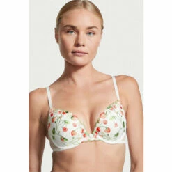 Our dreamy new collection is ripe for the picking, embroidered with delicate fruit stitched by hand. This romantic push-up is kissed with sweet strawberry and cherry appliques on fine tulle. It combines the confident lift you love with a plunge neckline and pretty, Swiss dot mesh sides. Push-up padding. Underwire. Adjustable straps. Back hook-and-eye closure. Fruit embroidery on tulle. Daisy applique at center front. Picot trim. Partially made with recycled materials. Hand wash.