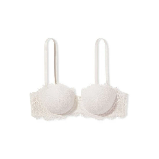 For those who want options: A strapless bra you can wear five ways, with delicate La Fleur lace. Memory Fit padding for lightweight lift, and a smoothing U-shaped back. Lightly lined. Underwire Straps. Adjustable, removable straps. Back hook-and-eye closure. Wear classic, halter, one-strap, crossback, or strapless. U-shaped ballet back prevents band from riding up and offers more coverage.