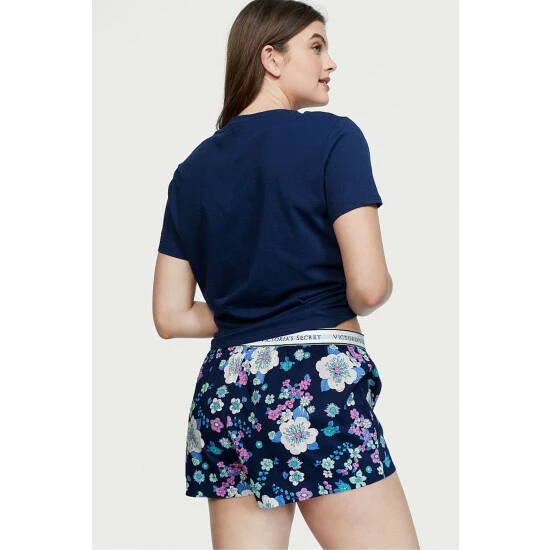 Lightweight cotton is made to keep you comfy with a classic tee and short design you'll want to lounge in all day. Relaxed fit. Short sleeves. Logo elastic waist.