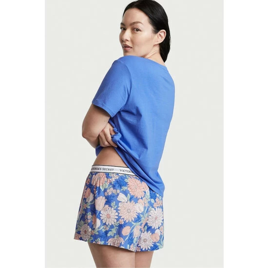 Lightweight cotton is made to keep you comfy with a classic tee and short design you’ll want to lounge in all day. Relaxed fit Short sleeves. Logo elastic waist.