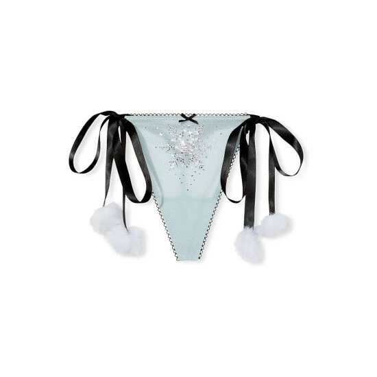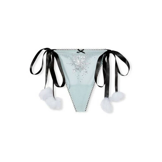 Tis the season for the perfect V-string panty. This one features sheer mesh fabric, a crystal-encrusted snowflake, and pom-pom side ties. Sheer mesh silhouette Snowflake embellishment Side tie with pom-poms No back coverage Machine wash Imported