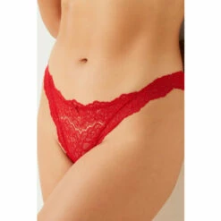 Infinite lace. This playful thong panty is all about the details, with scalloped trimming and an accent ribbon at the front.