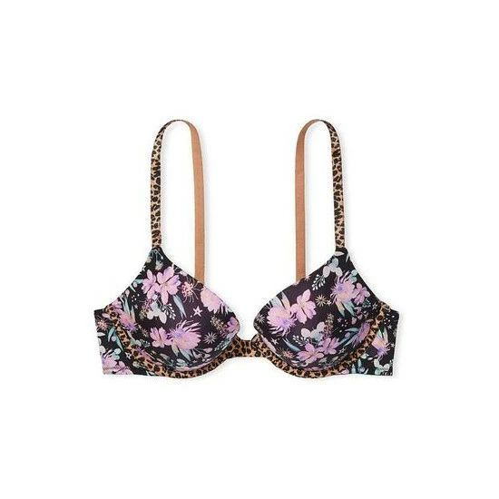 A fresh and fun print mix adorn this quintessential push-up style. Push-up. Underwired. Adjustable straps. Hook-and-eye closures at back.