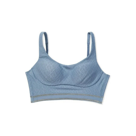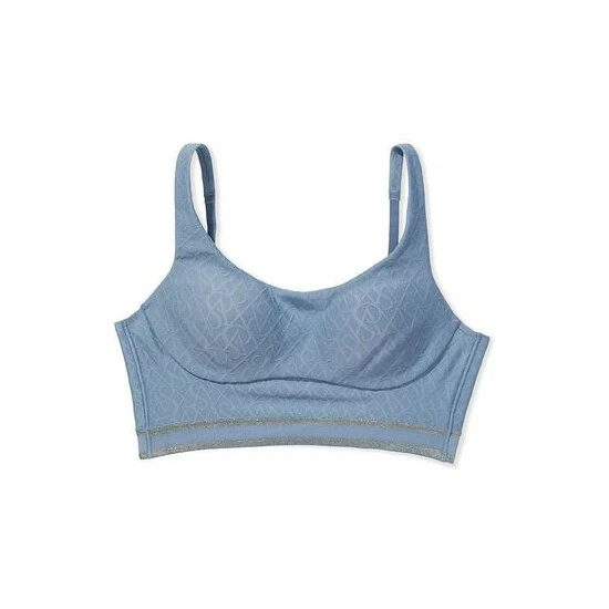 A lightweight piece with medium support, designed in a strappy-back silhouette with embossed logo fabric and a soft elastic band. Featuring a breathable foam pad for stabilized support, definition, and no bounce, it’s ready to bike, box, and train hard. Lightly lined with built-in support pad. Wireless, molded cup for stabilized support, separation, bounce control. Adjustable straps. Thick bottom elastic band stays in place. Perfect for spinning, kickboxing, circuit training. Scoop neck, strappy back. Pull-on design. Wicking fabric keeps you cool and dry.