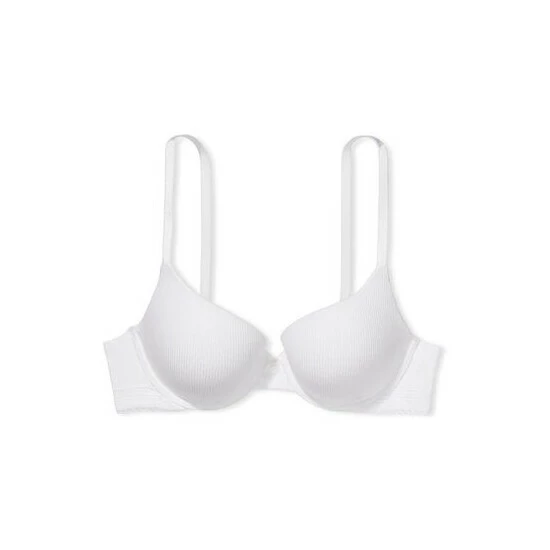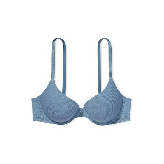 A push-up bra so plush, you’ll prefer it to wearing nothing at all. Cotton-blend ribbed fabric covers push-up full coverage cups, bordered by soft lace trim at the wings.; Lift ; Lining; Full coverage Push-up padding; Underwire; Straps ; Hooks; Adjustable straps convert to crossback Back hook-and-eye closure Details ; Fabric; Lace trim along bottom hem Center button accent Hand wash; Imported;