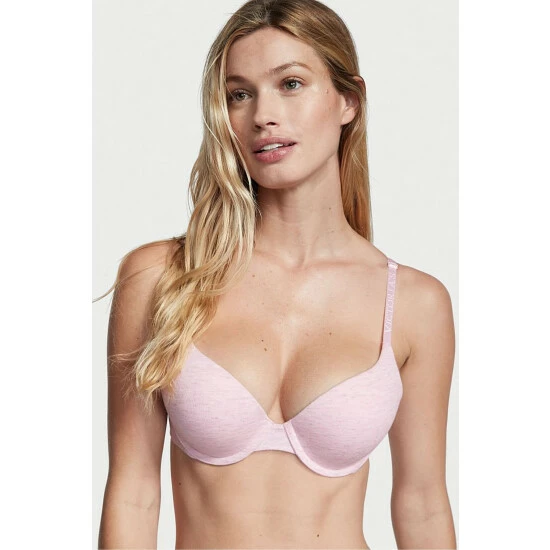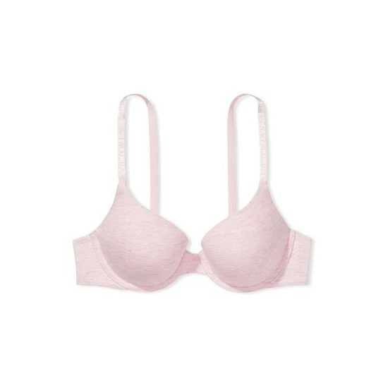 Our best-selling T-shirt bras are now updated with partially recycled materials. Same flawless fit-full coverage with plush push-up padding that enhances your natural shape-but you can feel even better about wearing it. You’ll love the hint of shimmer woven throughout the heathered cotton fabric. Finished with our signature logo straps. Push-up padding. Made with a 100% recycled pad liner. Full coverage. Underwired. Adjustable straps. Back hook-and-eye closure. Logo elastic straps. Partially made with recycled materials.