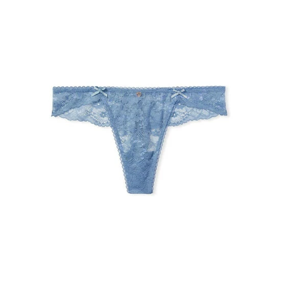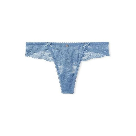 Wrap up in the shimmery floral lace of this no-show style, complete with an elastic picot waistband, lingerie bows, and a gold-tone logo charm. Bonus: Our lace is made with at least 50% recycled yarns. Low rise. Lace lays flat for no show-through. Elastic picot waistband. Pure cotton panel gusset. No back coverage. Lingerie bows at hips. Logo charm at center. Partially made from recycled materials. Machine wash.