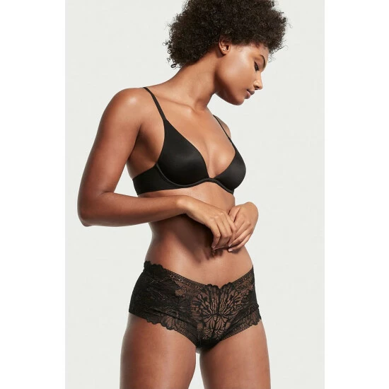 Shortie style in luxurious lace, this full-coverage panty gives you that romantic look with a comfortable fit. Mid rise. Allover lace. Full back coverage, shows curves, not skin.