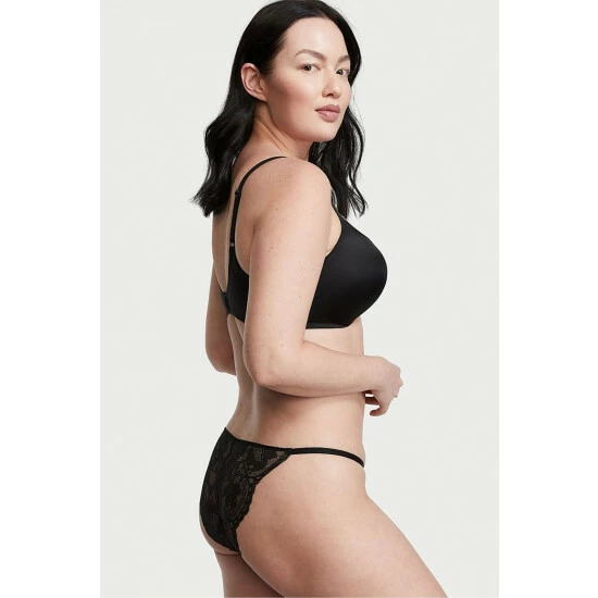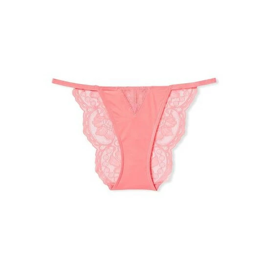 With a delicate lace front inset and sheer. Chantilly back, this cheeky style is positively enchanting. Low rise. Cheeky fit: moderate back coverage; shows a little but not all. Cotton panel gusset.