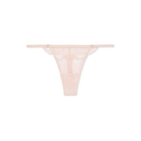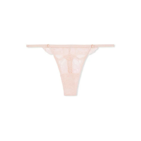 Feel confidently sexy in a beautiful thong combining luxe lace and strappy sides. Offered in a range of brilliant jewel tones. Low rise. String waist. Cotton panel gusset. No back coverage. Partially made with recycled materials.