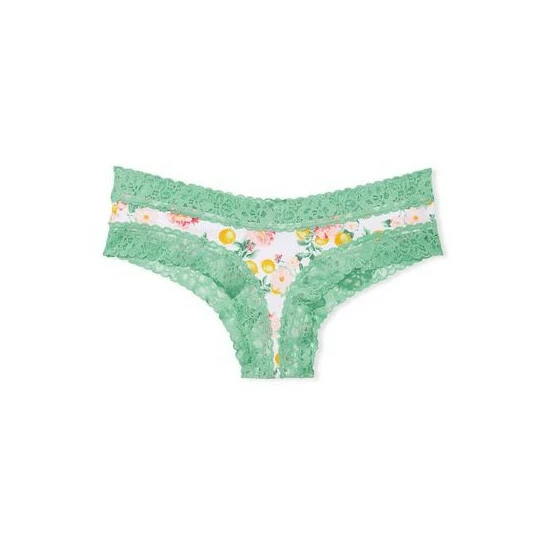 Cotton. Sexy. Cool. Supersoft stretch cotton meets ultra-cool comfort in lace-waist cheeky panty perfect for wearing everywhere. Soft cotton with stretch. New floral lace trim. Low rise. Minimal back coverage: lots of cheek peek