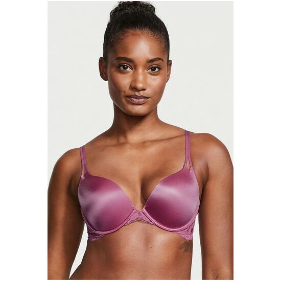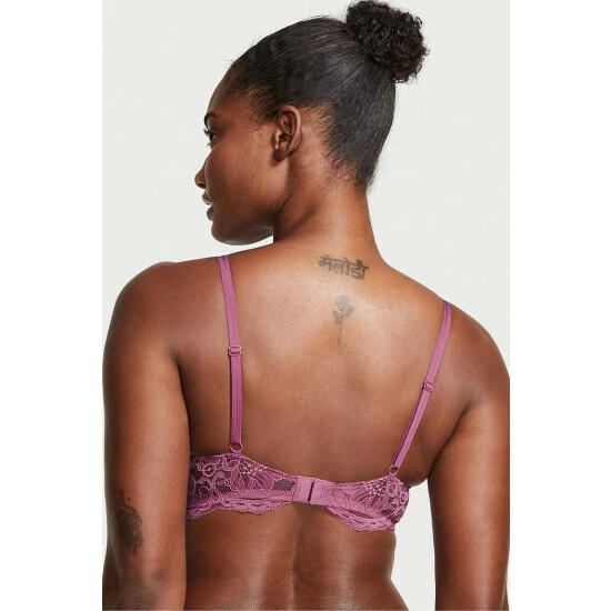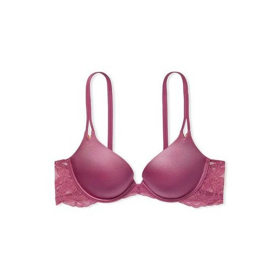 Feel sexier than ever with the plush push-up padding and disappearing infinity edges of this staple bra, finished with delicate and golden V-hardware details. Push-up padding adds one cup size. Adjustable straps. Back hook and eye closure. Infinity edge for an invisible look under clothes. Cutout cup details with V-hardware accents. Lace band. Partially made from recycled materials.
