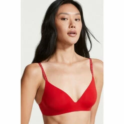 Your new go-to. A bra that’s unbelievably soft and comfy, featuring cups that keep their shape 24/7, accented in our logo throughout. Lightly-lined. Wireless. Adjustable straps. Hook-and-eye closures at back. Hand wash.