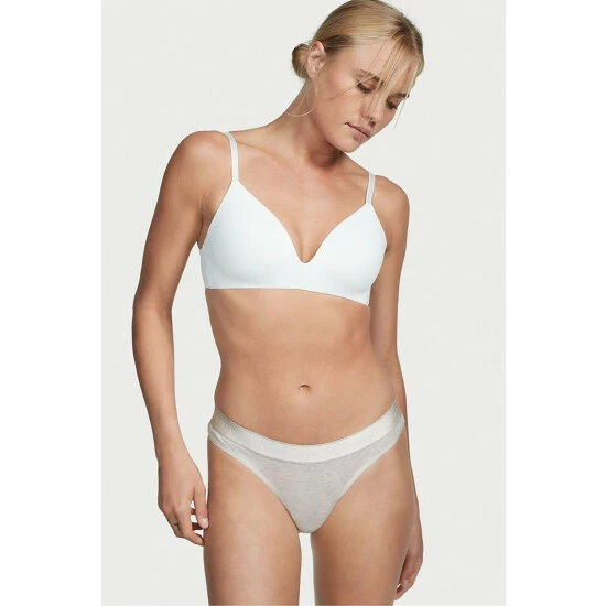 Comfy. Sexy. Cool. With the smooth fit and seamless look you need. This everyday thong features supersoft, heathered cotton and our stretchy logo waistband. Let it peek out as an on-trend statement. Cotton-modal blend. Soft logo elastic waistband with stretch. Mid rise. No back coverage. Machine wash.