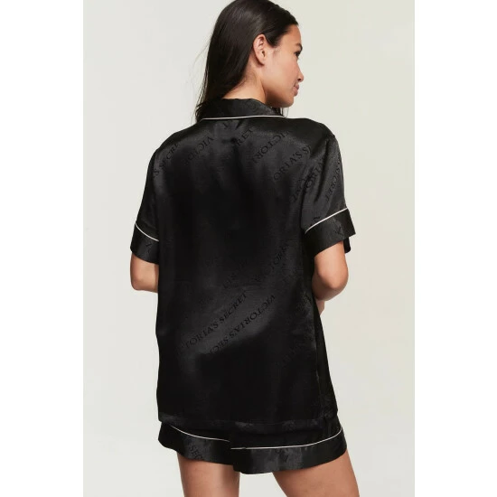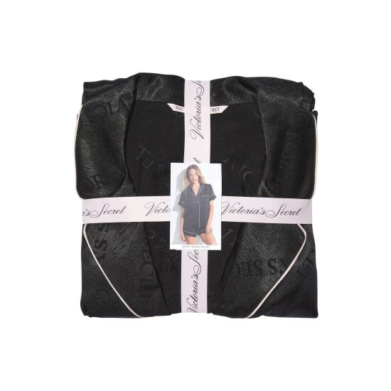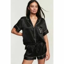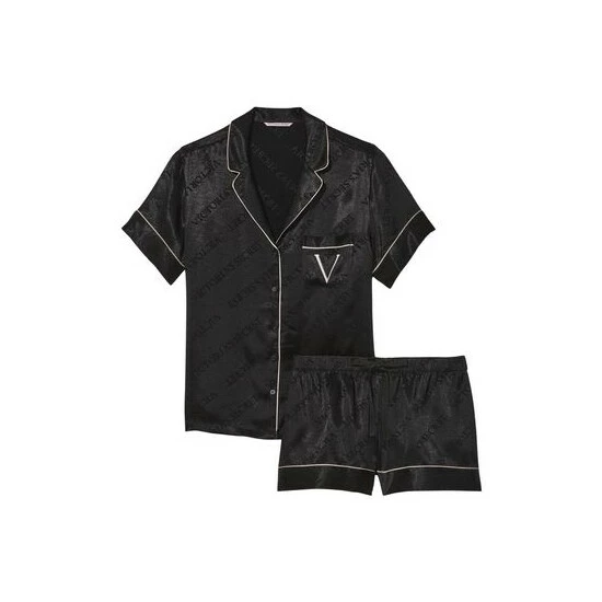 Give the gift of a beautiful night’s rest. This luxurious sleep set comes subtly stamped with our logo allover, plus monogram embroidery at the chest pocket for extra brand love. Relaxed fit Short-sleeve, button-front top hits at hips Notch collar and contrast piping Chest pocket with embroidered “V” Short with drawstring waist Soft fabric embossed with logo 3″ inseam Machine wash Imported