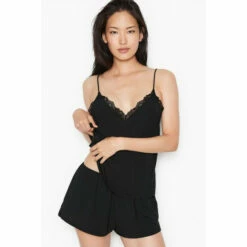 Supersoft and ultra-comfy, an easygoing modal cami set with delicate lace trim, plus a V-neckline and elegant straight back. Light, easy and ultra-soft modal with a touch of stretch. Top with lace trim and adjustable straps. Short with 2” inseam. Machine wash.