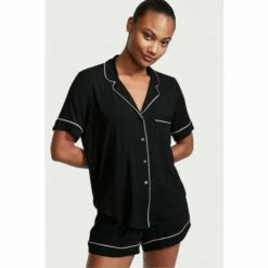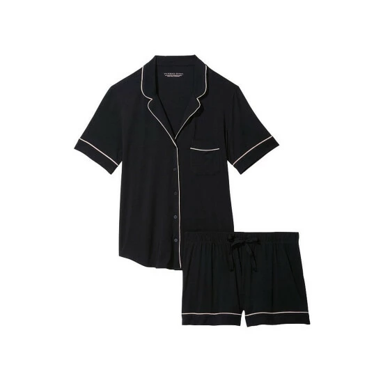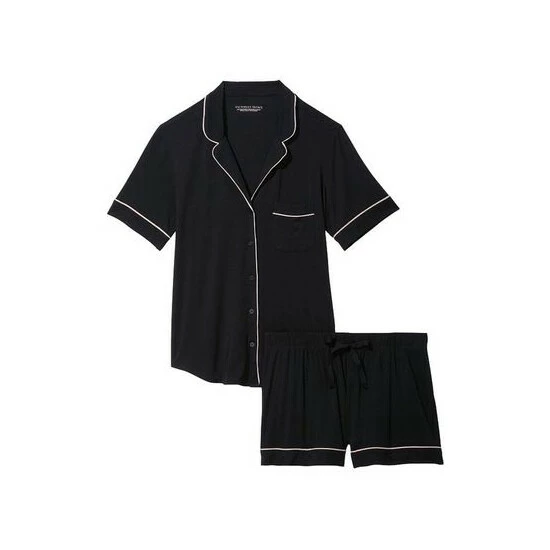 Top priority: everlasting comfort. This supersoft modal PJ set features a button front, chest pocket, notch collar and decorative piping.; Easy fit; Light, easy and ultra-soft modal with a touch of stretch; Short-sleeve, button-front top hits at hips; Short with drawstring tie waist; 3″ inseam; Machine wash; Imported.