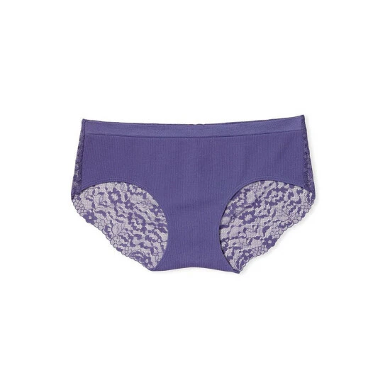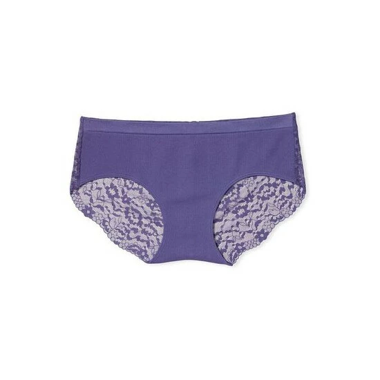 The ideal mix of softspun comfort and femininity. This pretty panty balances buttery-smooth, ribbed material in front with a delicate lace back and full coverage. Low rise. Seamless Elastic waistband. Full back coverage: shows curves.