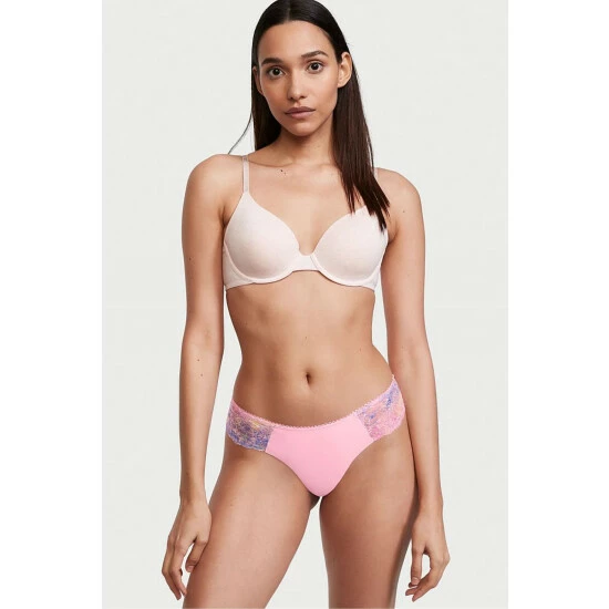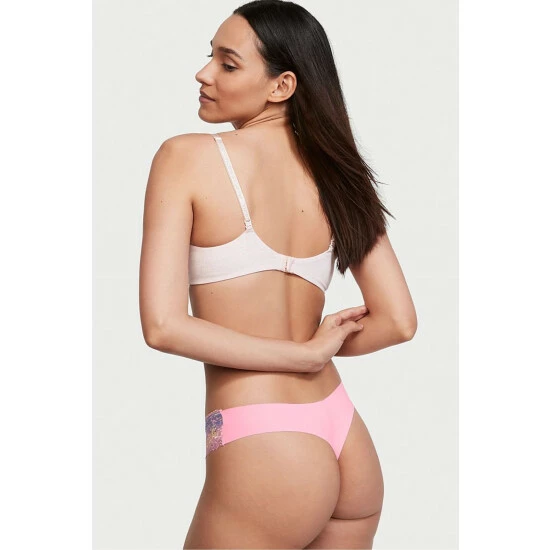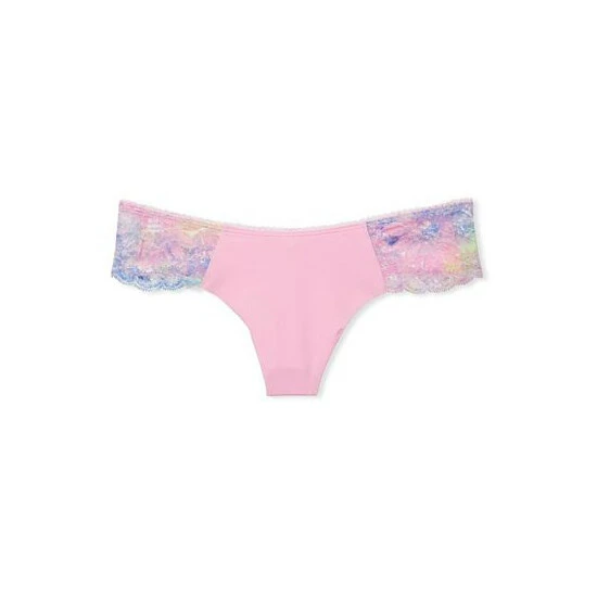 Smooth, seamless, and forever comfortable featuring a thong silhouette and raw-cut edges that are invisible under the tightest clothes. Floral lace side panels add a dainty touch. Low rise. Smooth, moisture-wicking fabric. Floral lace side panels. Pure cotton panel. No back coverage. Machine wash.