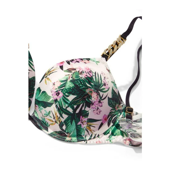 The instant confidence boost you want, the comfortable support you need. Our best-selling, maximum-impact push-up takes what you have and gives it extra oomph. Add-two-cups technology creates dramatic lift and enhances cleavage, with softer-than-ever padding. New, embellished chain hardware adds a glam touch of bling. Lift ; Lining Maximum lift (adds 2 cup sizes) Underwire Straps ; Hooks Adjustable straps; Back hook-and-eye closure Details ; Fabric Plunge neckline Embellished chain shine strap detail Hand wash; Imported