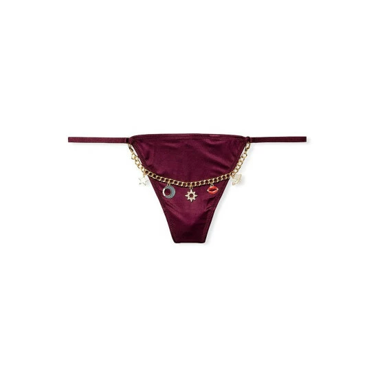 Refresh your top drawer picks with this barely-there. V-string that features a golden chain detail adorned with dangling charms. Low rise. Charm chain accent. String sides. No back coverage.