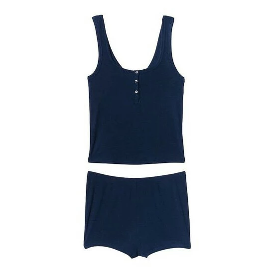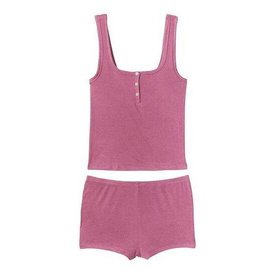 Sleep tighter. We fused our most-loved modal fabric with a buttery, ribbed texture on a clingy pajama set that’s impossibly soft and quietly sexy. Including a button-front tank top and short shorts perfect for relaxing. Includes top and bottom. Ribbed modal with a touch of four-way stretch. Body-hugging fit. Sleeveless. Hits at hips. Short with elastic waist. 2 inch inseam.