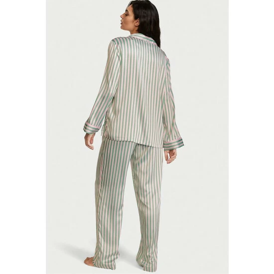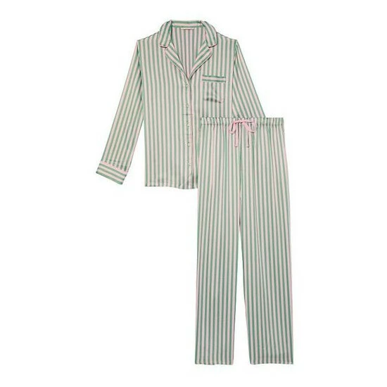 Now entering sleep mode. Relax in this satin pant and matching long-sleeve top with a chest pocket, notch collar, and decorative piping. Easy fit; Long-sleeve, button-front top hits below hips; Chest pocket with embroidered V; Pant with drawstring waist; Short: 29″ inseam, Regular 31″ inseam, Long 33″ inseam; Machine wash; Imported;
