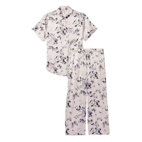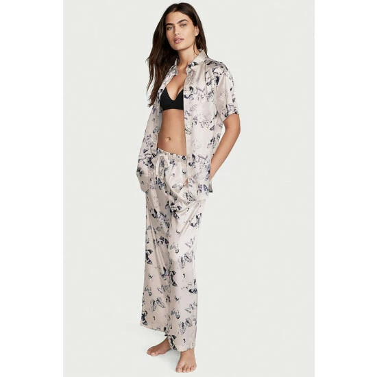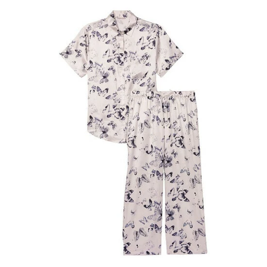 Cute, comfy, and perfect for those in-between seasons-this silky combo offers a relaxed button-up and matching drawstring pants cropped at the ankle. Easy fit. Long-sleeve, button-front top hits below hips. Chest pocket with embroidered V. Pant with drawstring waist. Short: 29 inseam, Regular 31 inseam, Long 33 inseam.