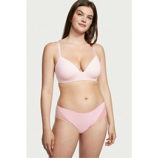 Smooth and sleek in front, featuring a delicate mesh back. This elevated-everyday style back offers sheer, full coverage with a graphic twist. Low rise. Elastic waistband. Striped mesh lace back. Full coverage: shows curves.
