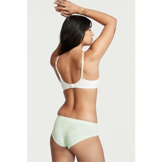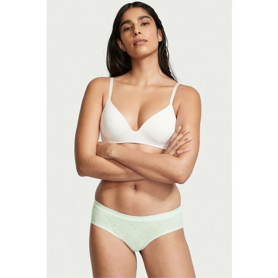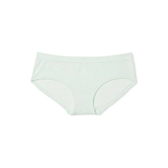 Embrace everyday comfort in a seamless ribbed hiphugger panty that has you fully covered.; Mid rise Logo waistband Full back coverage: shows curves not skin Machine wash Imported