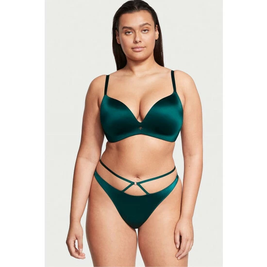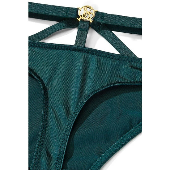 You’ll be so obsessed with the strappy details on this silky-smooth thong. Wear them low or high on the hips for a bold, on-trend look. Simply irresistible paired the matching bra. Strappy waist details. Gold-tone VS logo charm at center back. No back coverage. Machine wash.