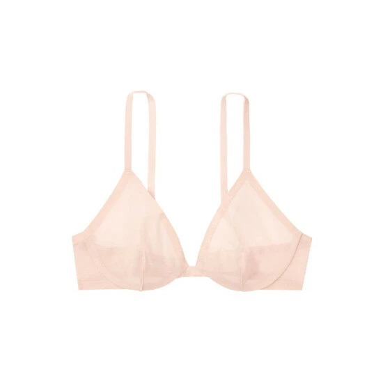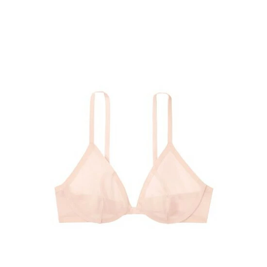 A subtle logo trims sheer mesh in this light-as-air plunge bra with underwire support. Lift ; Lining Sheer, unlined cups Underwire Straps ; Hooks Adjustable straps Back hook-and-eye closures Details ; Fabric Sheer mesh Flocked logo at the edges Velvet Straps Hand wash Imported Body/wing: 60% polyamide, 40% elastane Flocking: 100% polyamide exclusive of decoration