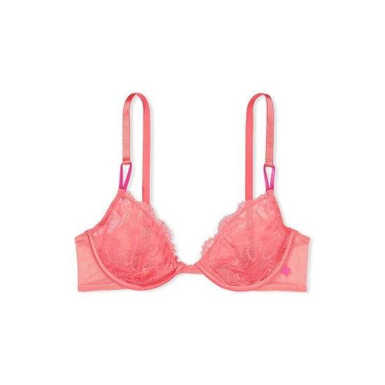 With butterfly lace this gorgeous, who needs lining? Satin-encased underwires provide support, while dotted mesh wings and ruffled straps add to the whimsy of it all. Lift ; Lining; Unlined; Underwire Straps ; Hooks; Adjustable straps convert to crossback Back hook-and-eye closure Details ; Fabric; Butterfly lace; front Elastic loop straps Dotted mesh along wings Hand wash; Imported; ;