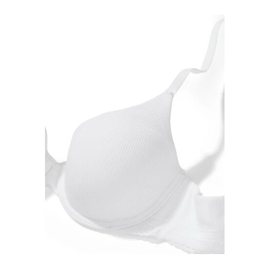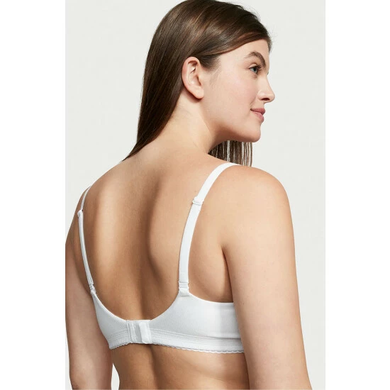 More than just a base layer-it’s your all-day, every-day support system. Our ribbed cotton demi fits like a dream, featuring thin foam pads-now 100% recycled-which are softer than ever. Designed for a nearly invisible look under even the clingiest tops. Lift. Lining. Lightly-lined. Made with a 100% recycled pad liner. Moderate coverage. Underwire. Straps. Hooks. Adjustable straps convert to crossback. Back hook-and-eye closure. Fabric: Picot lace trim along wings. Center button accent. Partially made with recycled materials.