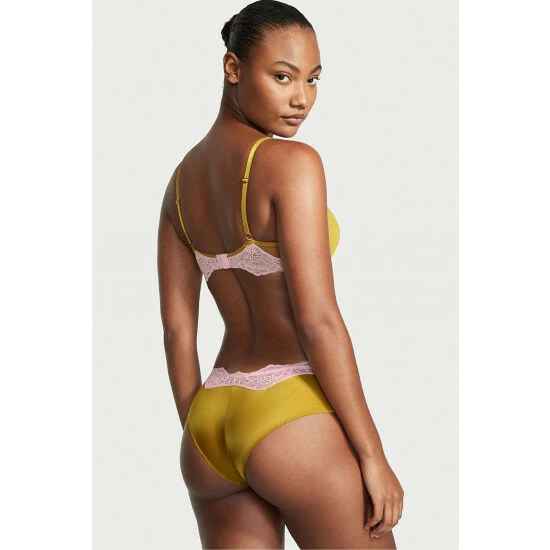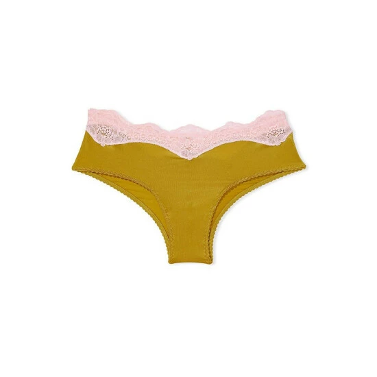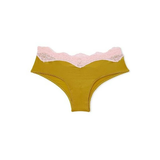 Silky-smooth fabric in brilliant jewel tones is trimmed with contrasting Chantilly lace at the waist. Made to pair with the matching bras. Low rise. Stretch lace waist. Cotton panel gusset. Moderate back coverage: shows a little but not all. Machine wash.